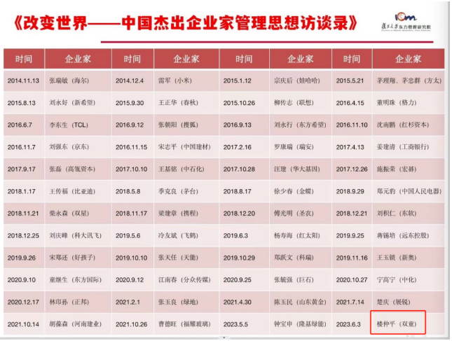 張瑞敏、雷軍、宗慶后等知名企業(yè)家被收錄名單中