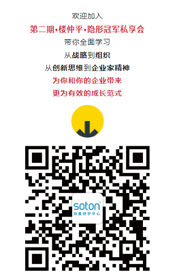 基于自身坎坷的成長(cháng)史,樓仲平老師在隱形冠軍私享會(huì )中將不僅為同學(xué)們帶來(lái)畢生所學(xué),更多的則是畢生所悟,傳授思維范式。