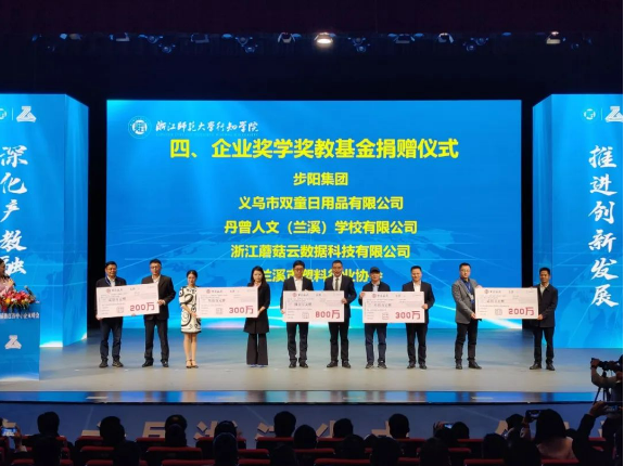 本次峰會(huì )還設立企業(yè)獎學(xué)獎教基金共1800萬(wàn)元,其中,義烏市雙童日用品有限公司設立基金300萬(wàn)元,為浙江師范大學(xué)行知學(xué)院的教育事業(yè)添磚加瓦。