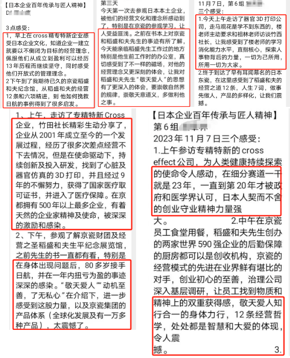 紙上得來(lái)終覺(jué)淺,任何方式的“道聽(tīng)途說(shuō)”都比不上真正走進(jìn)企業(yè)內部。本次參訪(fǎng)的企業(yè)綜合了世界百強標桿企業(yè)、充滿(mǎn)科技的現代企業(yè)以及專(zhuān)精特新的中小型長(cháng)壽企業(yè)。京瓷集團,有很多學(xué)員說(shuō),這是一家能用“朝圣”來(lái)形容的企業(yè)。對于中小企業(yè)而言,照搬照抄京瓷這樣大公司的管理運營(yíng)模式是行不通的,更科學(xué)的學(xué)習方式反而是學(xué)習它的理念和文化,而最佳的方法就是走進(jìn)他的博物館。