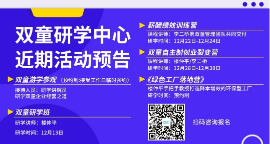 “雙童”憑借自主制創(chuàng )業(yè)裂變機制,已培養了15個(gè)創(chuàng )業(yè)體和21個(gè)經(jīng)營(yíng)體,賦能了一大批優(yōu)秀管理者向創(chuàng )業(yè)者的轉變。在游學(xué)過(guò)程中,將會(huì )帶學(xué)員們走進(jìn)各創(chuàng )業(yè)體工作現場(chǎng),并邀請創(chuàng )業(yè)體總經(jīng)理現場(chǎng)交流組織變革的實(shí)操經(jīng)驗、解答疑惑。