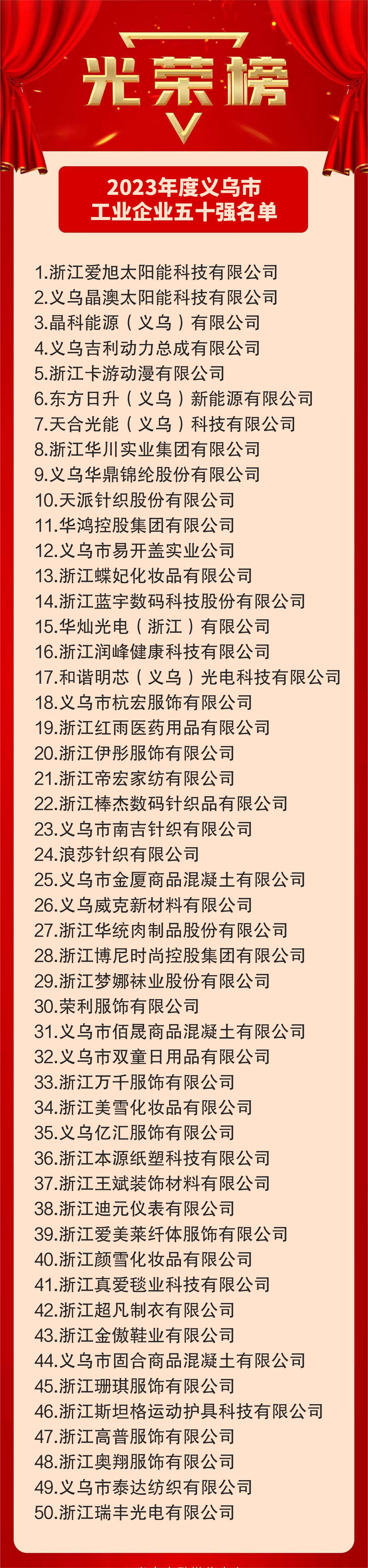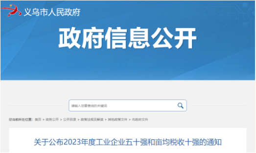 2023年度義烏市工業(yè)企業(yè)五十強名單