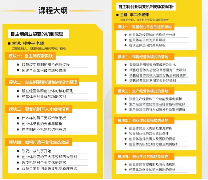 裂變機制在“雙童”取得了如此大的成就,為了幫助更多中小微創(chuàng )業(yè)者,早在2022年,雙童商學(xué)院就針對該機制打磨成《自主制創(chuàng )業(yè)裂變營(yíng)》課程,并不斷地升級迭代,現在該課程已經(jīng)是一套非常成熟的、可復制、可實(shí)踐的課程。目前已經(jīng)賦能了1600+家中小企業(yè)成長(cháng)!