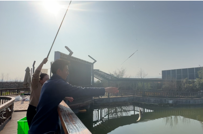 二十度的空氣里已經(jīng)褪去了冬的寒意,因又恰逢周末,所以在空中花園的各個(gè)角落都聽(tīng)得到歡聲笑語(yǔ)!這不,圍著(zhù)300多平的空中魚(yú)塘,就已經(jīng)坐著(zhù)了好幾撥兒垂釣的人,三五成群,是朋友,是家人,是父親與孩子……