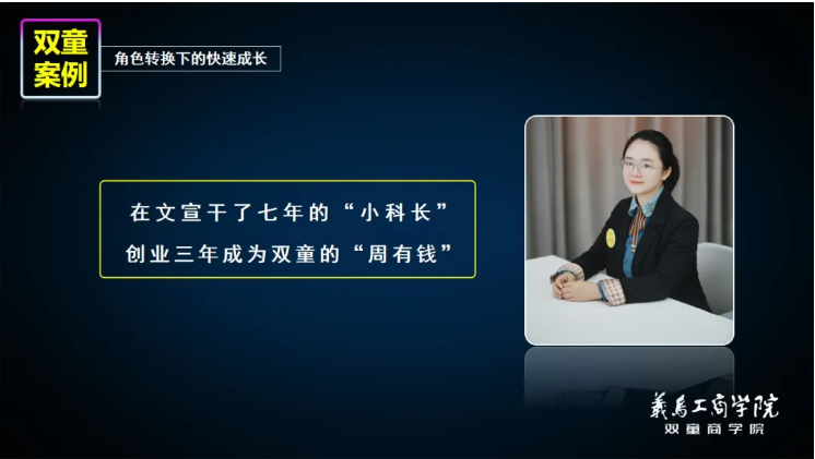 就像雙童平臺第五創(chuàng )業(yè)體總經(jīng)理周上,沒(méi)有被機制推動(dòng)之前,她做了7年的“無(wú)憂(yōu)無(wú)慮”的“小科長(cháng)”,但通過(guò)裂變機制從員工向創(chuàng )業(yè)者角色轉換后,僅用3年的時(shí)間,自我驅動(dòng),成為雙童平臺成長(cháng)最快的創(chuàng )業(yè)體總經(jīng)理!
