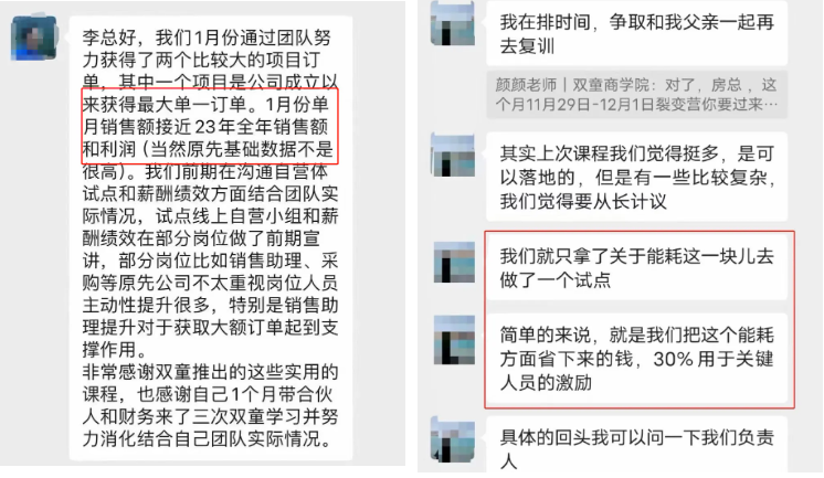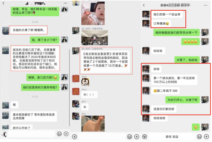 為了能夠助力更多中小企業(yè)也能運用這套機制實(shí)現快速增長(cháng),雙童商學(xué)院早在2022年,雙童商學(xué)院就針對該機制打磨成《自主制創(chuàng )業(yè)裂變營(yíng)》課程,并不斷地升級迭代,該課程已經(jīng)是一套非常成熟的、可復制、可實(shí)踐的課程,完全契合中小微創(chuàng )業(yè)者的需求,報名人數也從原來(lái)的幾十人變成現在期期爆滿(mǎn)的“百人團”!