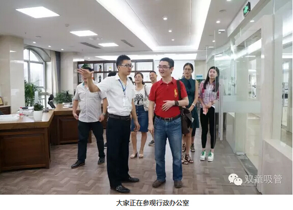 一到“雙童”的行政辦公室,大家對這樣細膩簡(jiǎn)約、極致精細的辦公環(huán)境很好奇。二當家李二橋向大家介紹“雙童”的七八十號行政員工都在這里進(jìn)行集中辦公,聽(tīng)到這里,大家都紛紛稱(chēng)贊“雙童”和諧開(kāi)放的辦公氛圍。
