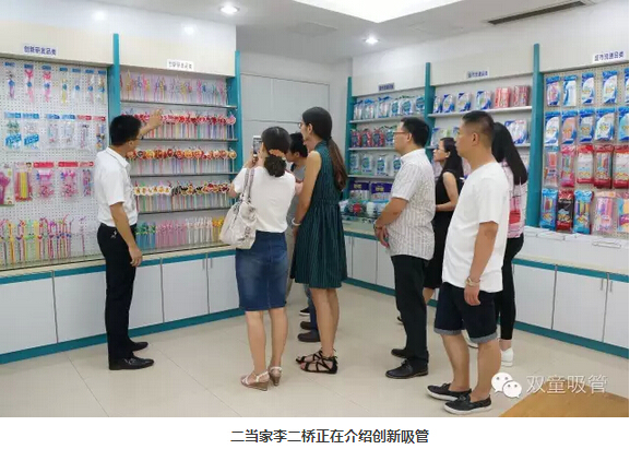 移步樣品房,大家都被琳瑯滿(mǎn)目的各類(lèi)吸管所吸引。二當家李二橋介紹了一系列他們從沒(méi)見(jiàn)過(guò)的創(chuàng )新吸管,讓他們驚訝的是,原來(lái)一根小小的吸管也有這么多的功能可以開(kāi)發(fā)。