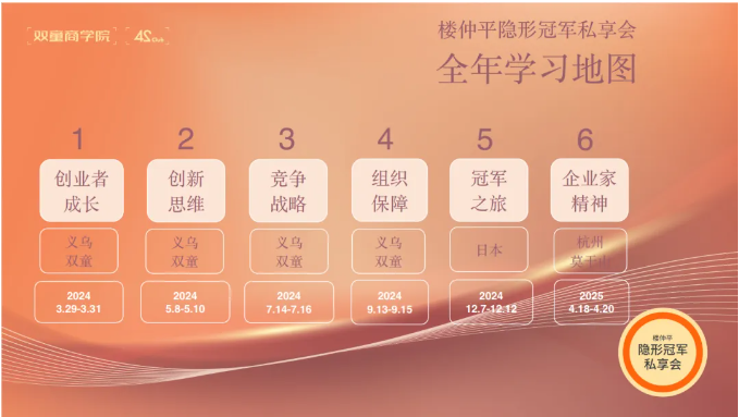 沒(méi)趕上本次《冠軍之旅》的朋友也別擔心,2024年5月26日,雙童總經(jīng)理李二橋也將帶領(lǐng)30多位企業(yè)家朋友一起走進(jìn)日本標桿企業(yè),全方面學(xué)習優(yōu)秀經(jīng)營(yíng)理念,助力企業(yè)成長(cháng)!
