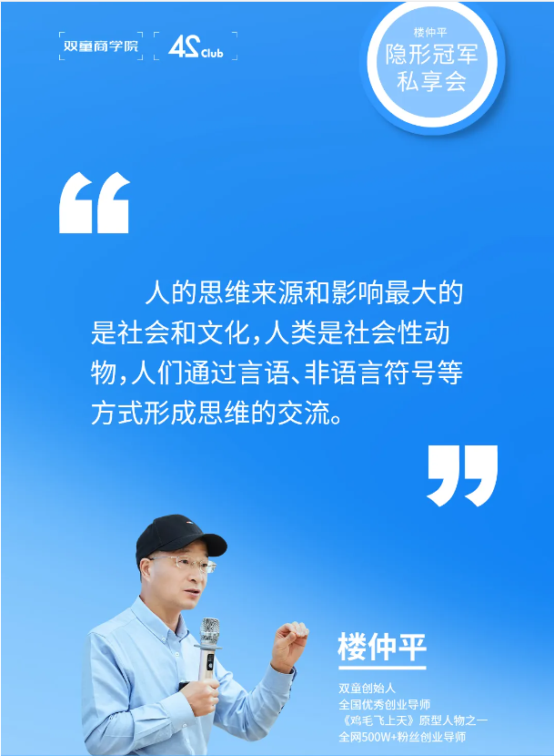 本期,樓仲平老師將攜手薛元昊老師,通過(guò)三天時(shí)間鍛煉私享會(huì )學(xué)員們的創(chuàng )新思維與多元思維,從底層打通商業(yè)認知,交付哲科思維和商業(yè)高認知!