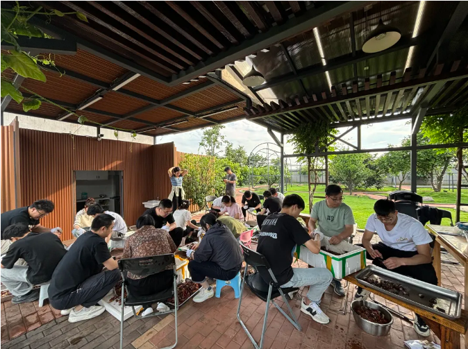 迎著(zhù)晚風(fēng),雙童屋頂花園的枇杷林飄來(lái)陣陣香甜的氣息,沁人心脾!所以在等待小龍蝦成熟的過(guò)程中,大家在總助的提議下,決定一起釀一壇“枇杷酒”,待到下月團建,就由銷(xiāo)售經(jīng)營(yíng)體的銷(xiāo)冠親自開(kāi)封,儀式感直接拉滿(mǎn)!