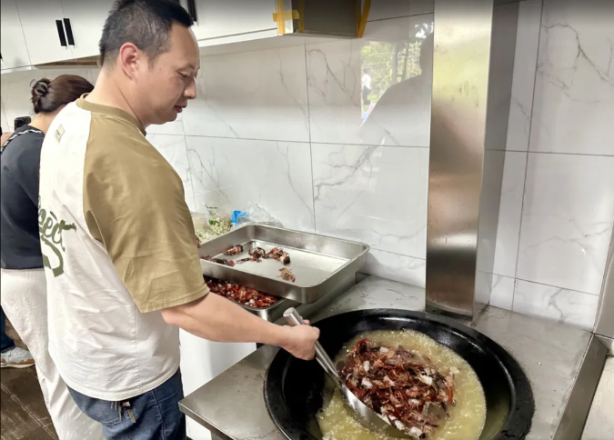 不一會(huì )兒,一鍋接著(zhù)一鍋的小龍蝦就被端上桌了,鮮、香、麻、辣,色香味俱全,不得不說(shuō),“雙童”小伙伴們的隱藏技能很厲害呀!而且全程自己參與清洗、制作過(guò)程,吃起來(lái)也超放心!