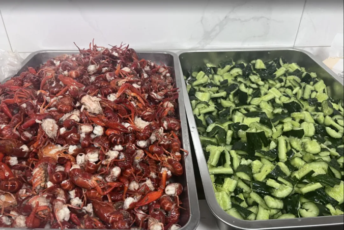 等到300斤小龍蝦被運到空中花園時(shí),所有的小伙伴都已經(jīng)準備就緒了,有專(zhuān)門(mén)去頭取蝦線(xiàn)的小分隊,小龍蝦“洗刷刷”小分隊、傳送小分隊和后廚配菜、掌勺小分隊,大家分工明確,同步進(jìn)行,配合相當完美,就像平時(shí)在工作中一樣有默契,每一個(gè)步驟都不假人手,親自完成,滿(mǎn)滿(mǎn)參與感!