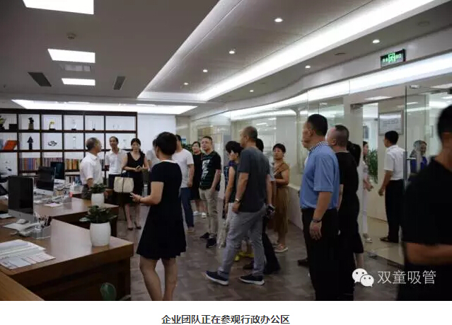 參觀(guān)的第一站,是我們的辦公區?;诰毠芾淼男枰?,我們辦公室都是今年最新改造裝修完成的哦!細膩簡(jiǎn)約、極致精細的辦公環(huán)境里,七八十號行政員工都在這里進(jìn)行集中辦公,連當家人樓總和幾位高層領(lǐng)導都從獨立辦公室里解放出來(lái),坐在一起辦公啦!看到這樣的辦公室,大家都紛紛稱(chēng)贊“雙童”的和諧開(kāi)放辦公氛圍。