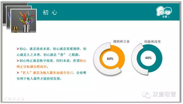當家人樓總分享:我們“雙童”不排斥任何商業(yè)模式,但我們始終認為“雙童”是一家“慢”公司。這個(gè)“慢”不是真的慢,“雙童”發(fā)展二十多年,在成長(cháng)的道路上并不慢。我說(shuō)的這種“慢”其實(shí)是不會(huì )在浮躁社會(huì )環(huán)境中“人云亦云”,不會(huì )根據外界的聲音過(guò)度改變自己的發(fā)展方向,也就是我們經(jīng)常說(shuō)的“初心”。作為我來(lái)說(shuō),我寧愿“雙童”走得慢一點(diǎn),穩一點(diǎn),也不愿意它走錯一步。