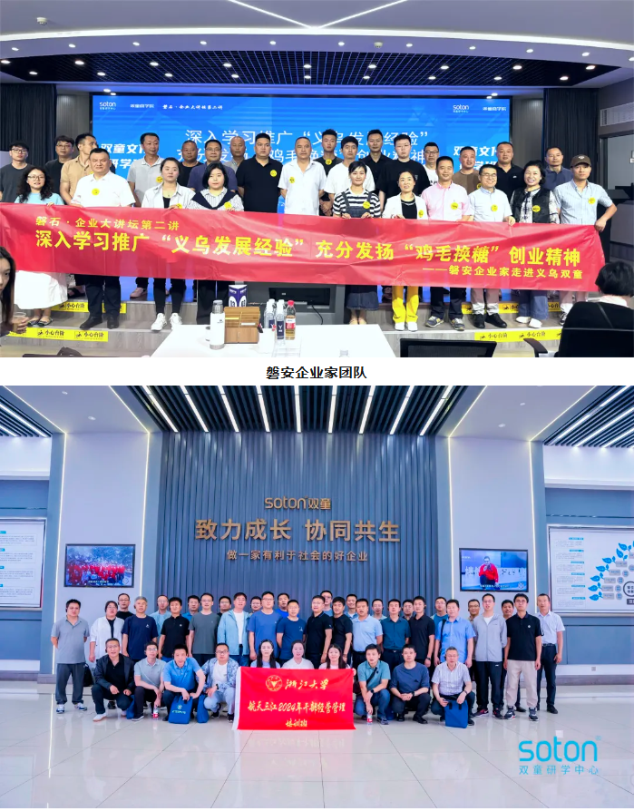 昨天一大早,雙童企業(yè)文化研究院就迎來(lái)了忙忙碌碌的一天,一億中流出海聯(lián)盟班、磐安企業(yè)家團隊、浙江大學(xué)培訓班,以及其他來(lái)自全國各地不同行業(yè)的共200多位創(chuàng )業(yè)者齊聚“雙童”,開(kāi)啟深度研學(xué)之旅,探索“雙童”穿越一個(gè)個(gè)經(jīng)濟周期、不斷成功轉型背后的奧秘!