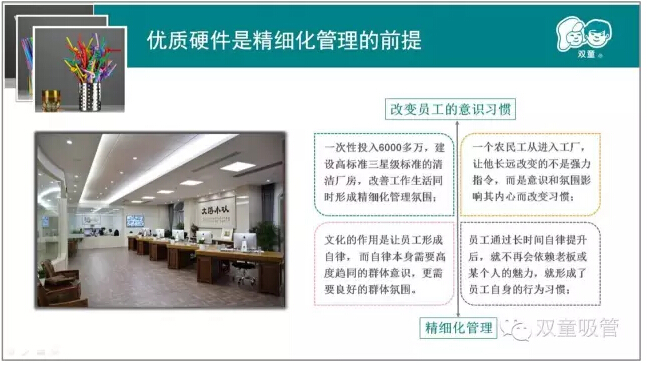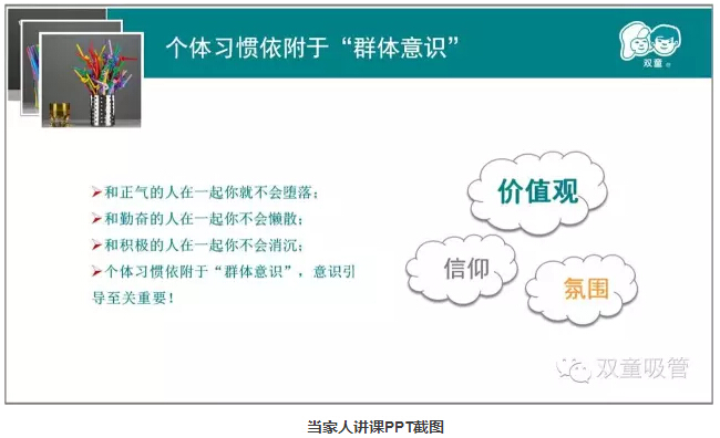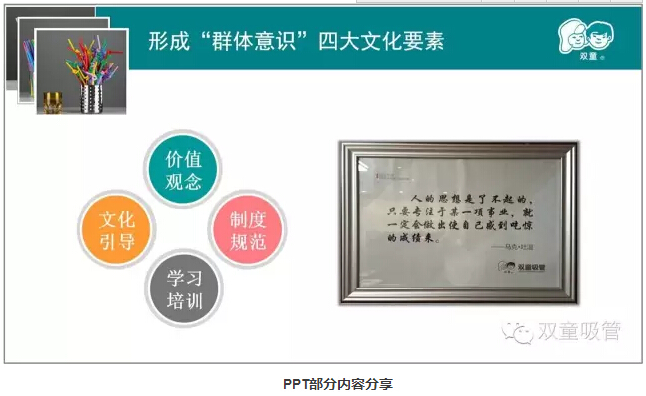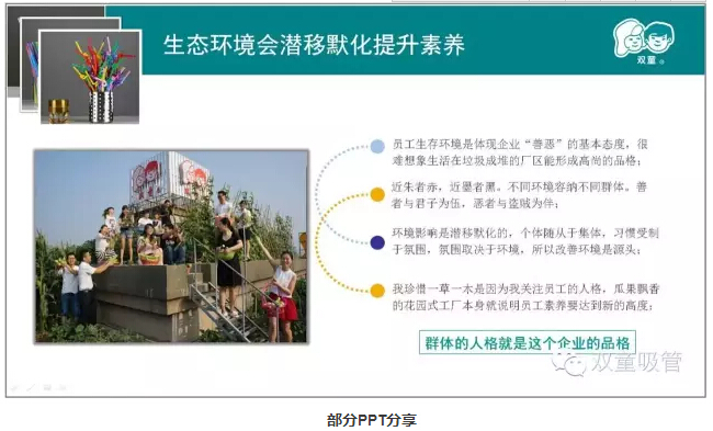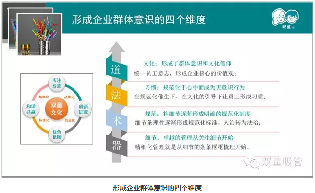 ”雙童“通過(guò)價(jià)值觀(guān)念、學(xué)習培訓、制度規范、文化引導形成來(lái)影響員工,養成好的行為習慣!