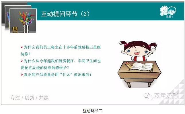 關(guān)于最后一個(gè)問(wèn)題,都不用吸管妞讓大家舉手,大家就已經(jīng)異口同聲地說(shuō)出了答案:真正的產(chǎn)品質(zhì)量是用“心”做出來(lái)的!看來(lái)大家在之前的課程上學(xué)到的知識都還沒(méi)有忘記呢!點(diǎn)個(gè)贊!