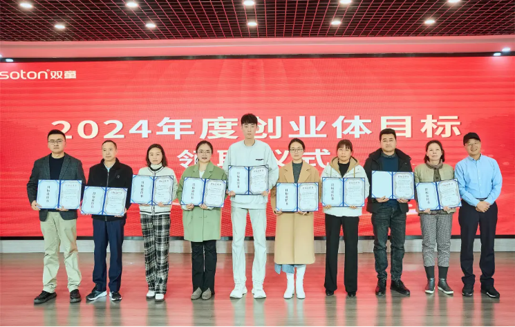 李橋(右三)在2024年年會(huì )上領(lǐng)取年度目標