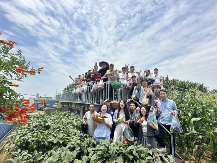 一走進(jìn)菜園,當家人樓總就帶著(zhù)小伙們開(kāi)啟“戰斗”模式,毫不夸張,只一會(huì )兒功夫,黃瓜、番茄被裝滿(mǎn)了一筐又一筐,這種在工廠(chǎng)里也能貼近自然的農家生活,真的超幸福!