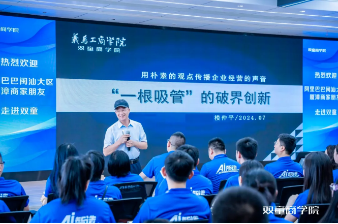 在課程收尾之際,創(chuàng )始人樓仲平也為前來(lái)研學(xué)的商家們分享《“一根吸管”的破界創(chuàng )新》。他娓娓道來(lái),追溯了與阿里巴巴長(cháng)達二十余載的深厚淵源,并深度剖析了“雙童”如何做到與數字化深度融合,并能轉型成功的。