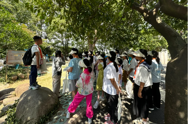 首站,吸管妞引領(lǐng)著(zhù)同學(xué)們踏入了雙童景觀(guān)池。這看似平凡無(wú)奇的景致,實(shí)則蘊藏著(zhù)不凡的智慧與環(huán)保理念。上層是一片波光粼粼、深達一米有余的景觀(guān)池,供人觀(guān)賞;下層則隱藏著(zhù)四米五深的中水儲存池,構成了一個(gè)廢水收集中水回用系統。