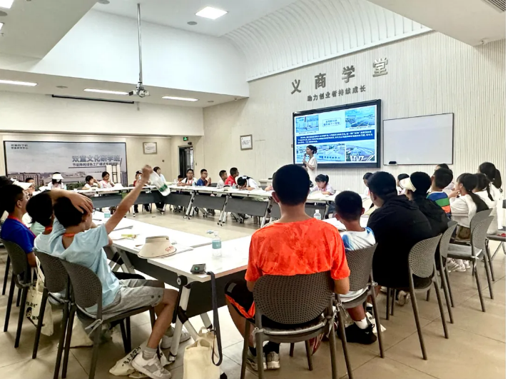 在百米文化長(cháng)廊之下,吸管妞借助一幅幅生動(dòng)鮮活的畫(huà)面,深情并茂地向同學(xué)們講述了“雙童”創(chuàng )始人樓仲平伯伯那段傳奇般的“雞毛換糖”創(chuàng )業(yè)歷程,以及小商品市場(chǎng)如何從蹣跚學(xué)步到蓬勃發(fā)展的輝煌軌跡。
