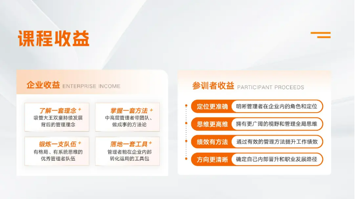 除了課程學(xué)習,學(xué)員們還在課程組所有老師的見(jiàn)證下,完成了精彩的畢業(yè)報告,無(wú)論是管理技能還是素養,都能看到清晰的成長(cháng)痕跡,也讓歷時(shí)4個(gè)月的課程學(xué)習完成了閉環(huán)!