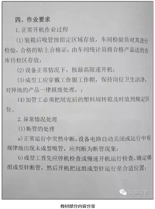 近期,由“雙童”代表行業(yè)編制的義烏市職業(yè)技能培訓教材《吸管成型工培訓教材》正式面世!這本書(shū)將作為吸管行業(yè)塑料飲用吸管成型工崗位的培訓教材,以后吸管成型工將可以有國家資質(zhì)認定了,對整個(gè)吸管行業(yè)來(lái)說(shuō)都是一次技能與操作上的統一提升。