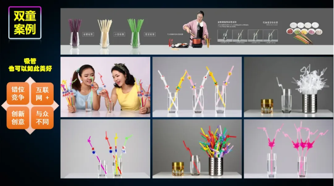 2005年時(shí),“雙童”的一條戶(hù)外廣告就打破了“吸管就是喝飲料的”隱含假設,巧妙地將吸管的用途從單一的“喝水”功能向情感化、體驗化和娛樂(lè )化等多個(gè)維度延伸,使產(chǎn)品售價(jià)和附加值都得到成倍增長(cháng),成功地讓“一根吸管”從“不可能”變成了“可能”。還通過(guò)不斷的要素拆解組合,創(chuàng )造出了上千個(gè)創(chuàng )新形態(tài)的吸管。