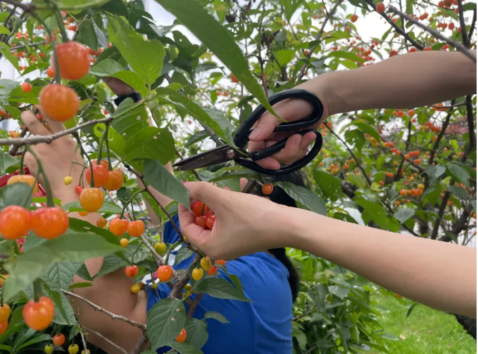 摘下一顆,丟進(jìn)嘴里,有的酸些,有的甜些,好似“開(kāi)盲盒”的體驗,讓大家欲罷不能,一顆又一顆,還好櫻桃樹(shù)足夠多,能讓大家實(shí)現“櫻桃自由”