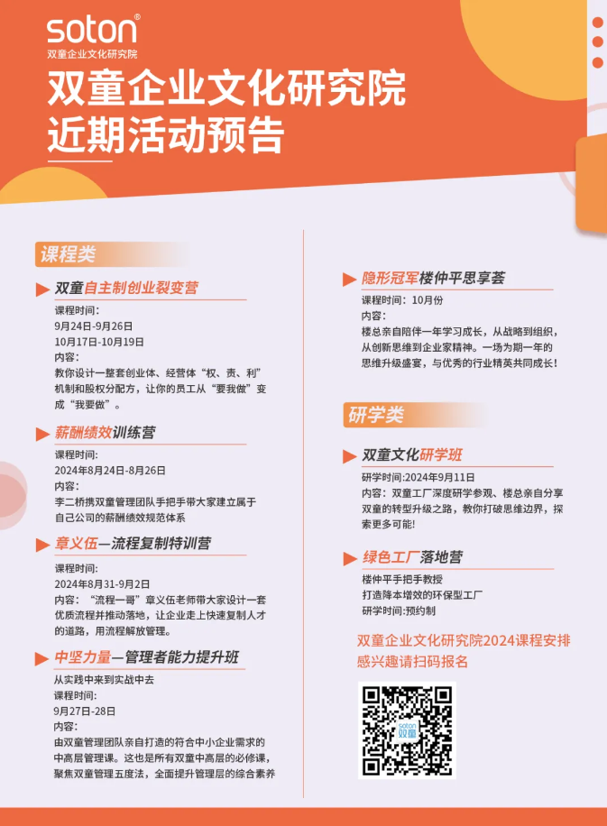 雙童的四時(shí)之景不同,味道更是各異,但雙童人每次采摘過(guò)程中露出的幸福笑容卻是一樣的,這也是創(chuàng )始人樓仲平愿意斥巨資為大家建造這樣一所空中花園最大的意義!不是簡(jiǎn)單的幾顆棗子、幾顆柿子,而是“雙童”真的把每一位員工當做家人,把工廠(chǎng)從冷冰冰的賺錢(qián)機器變成一個(gè)溫情宜居的生活社區!正如來(lái)雙童游學(xué)的學(xué)員說(shuō)的:“雙童”在工廠(chǎng)里,為員工建起了一個(gè)“烏托邦”~