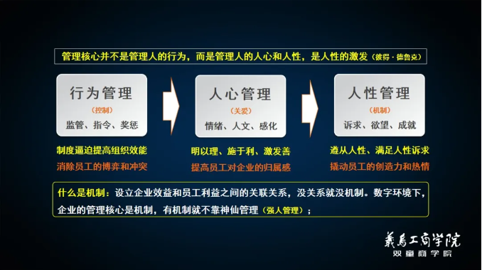 要徹底解決以上問(wèn)題,就必須正確認識管理的本質(zhì):管理不是管人的行為,而是管人心、管人性。從而制定滿(mǎn)足人性的機制!