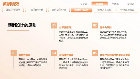 在整個(gè)課程交付中,李二橋老師會(huì )將課程拆解為認知篇、薪酬篇、績(jì)效篇和實(shí)操篇等四大板塊,循序漸進(jìn),讓學(xué)員們從對薪酬和績(jì)效的認知到實(shí)操慢慢過(guò)渡。除此之外,李二橋老師還會(huì )交付薪酬制定六步法(外部環(huán)境調查、內部自我診斷、崗位價(jià)值分析、薪酬結構設計、方案實(shí)施、年度效果復盤(pán)等);以及績(jì)效方案八步驟、銷(xiāo)售提成六方案等實(shí)用性工具。