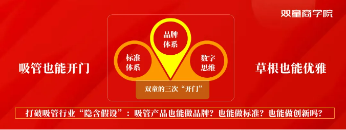 2015年之后,雙童已然成為行業(yè)“天花板”,在形勢一片大好時(shí),他再次選擇“破界創(chuàng )新”,毅然帶領(lǐng)雙童突破“一根吸管”的局限,不斷嘗試摸索,獨創(chuàng )了一套適合中小企業(yè)的裂變增長(cháng)的創(chuàng )新模式。