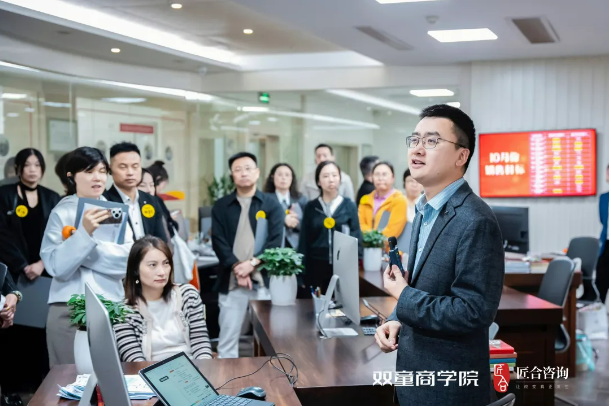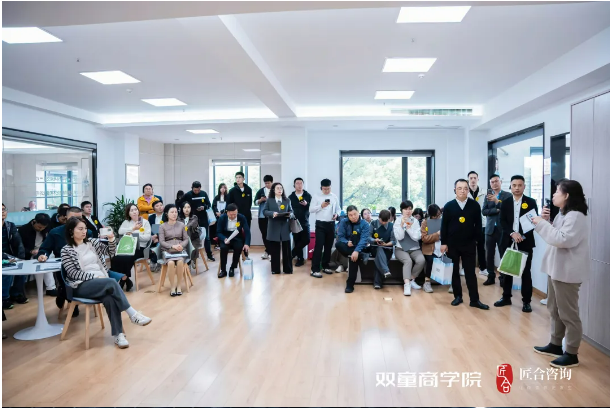 本周,雙童商學(xué)院又迎來(lái)了一批特別的參訪(fǎng)者——來(lái)自匠合咨詢(xún)的同學(xué)們,由劉育良老師親自帶隊。之所以說(shuō)特別,是因為匠合咨詢(xún)和雙童商學(xué)院本身就是親密的合作伙伴,劉玉良老師更是《自主制創(chuàng )業(yè)裂變營(yíng)》課程老師,所以此次雙童之旅,讓同學(xué)們倍感親切。