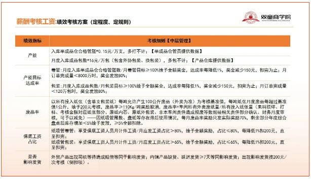 首先在生產(chǎn)相關(guān)崗薪酬績(jì)效方案解讀中,他以雙童生產(chǎn)崗位為案例,詳細拆解“雙童”在實(shí)際運行中針對不同工種、不同層級員工績(jì)效考核關(guān)鍵指標和整體方案的制定,啟發(fā)學(xué)員對標到自己的企業(yè),參考借鑒。