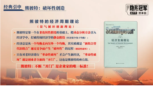 創(chuàng )業(yè)初期,領(lǐng)導需要“身先士卒”。但一旦大門(mén)打開(kāi)后,作為領(lǐng)導者就不應該再深陷其中,而是要站在更高的角度,推動(dòng)、觀(guān)察,找到新的發(fā)展方向。創(chuàng )業(yè)者的一生就是不斷“開(kāi)門(mén)”的過(guò)程,這正是約瑟夫·彼特所提到的理論。