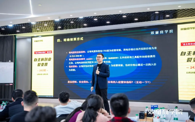 劉育良老師在第三天的落地實(shí)戰篇,則圍繞經(jīng)營(yíng)體方案怎么定?經(jīng)營(yíng)者怎么選?經(jīng)營(yíng)體和創(chuàng )業(yè)體落地保障這三個(gè)方面進(jìn)行交付。在課程交付中,劉老師穿插了大量案例進(jìn)行教學(xué),通過(guò)拆解裂變機制在制造業(yè)工廠(chǎng)、電商直播、連鎖企業(yè)、外貿公司等不同行業(yè)中的落地案例,提升學(xué)員舉一反三的能力!