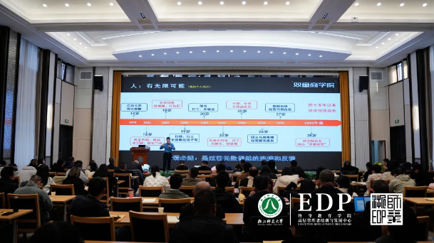 活動(dòng)結束后,樓仲平老師還受邀出席了“乘風(fēng)破浪 勵學(xué)致遠”浙江師范大學(xué)EDP教育中心13周年慶典暨EDP校友會(huì )2025新春晚宴。晚會(huì )上,樓仲平老師更受聘為“浙師大校友會(huì )EDP分會(huì )顧問(wèn)”。相信,通過(guò)新的平臺和身份,樓老師的韌商精神、周期意識和創(chuàng )業(yè)經(jīng)驗能影響和幫助更多的創(chuàng )業(yè)者。