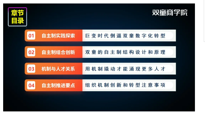 其次,在3位負責課程交付的老師中,樓仲平老師是該機制的首創(chuàng )者,李二橋老師是把自主制創(chuàng )業(yè)裂變機制落地在雙童的實(shí)操者,劉育良老師也擁有豐富的實(shí)踐經(jīng)驗,所以更能確保“從實(shí)踐中來(lái)、到實(shí)戰中去”,能切實(shí)幫助學(xué)員輸出一套企業(yè)組織創(chuàng )新方案,激發(fā)個(gè)體活力,推動(dòng)企業(yè)裂變式增長(cháng)。