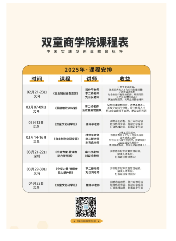 如果你也對“雙童”充滿(mǎn)好奇,也想賦能團隊共同成長(cháng),歡迎走進(jìn)3月12日【雙童文化研學(xué)班】,與上百位優(yōu)秀的創(chuàng )業(yè)者一起學(xué)習!少量名額,歡迎咨詢(xún)鎖定!