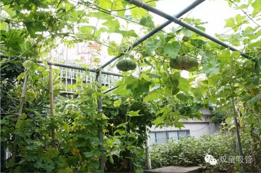 這樣的場(chǎng)景總會(huì )吸引來(lái)“雙童”參觀(guān)的朋友們駐足觀(guān)賞,拍照留念,贊嘆屋頂菜園的瓜果!