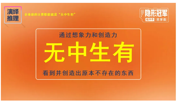 而推動(dòng)企業(yè)創(chuàng )新的職能主體則是企業(yè)家,企業(yè)家才是創(chuàng )新循環(huán)的驅動(dòng)者。因為經(jīng)濟增長(cháng)的根本源泉是人類(lèi)的“想象力”和“創(chuàng )造力”,所以企業(yè)想要獲得新的經(jīng)濟增長(cháng),就需要企業(yè)家通過(guò)“無(wú)中生有”的想象,發(fā)現潛在價(jià)值機會(huì )或者盈利空間,創(chuàng )造出原來(lái)不存在的東西。