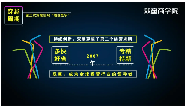 創(chuàng )業(yè)者的“成長(cháng)活性”又驅動(dòng)著(zhù)企業(yè)的“成長(cháng)活性”,所以通過(guò)樓仲平老師個(gè)人的持續進(jìn)化,也不斷推動(dòng)了“雙童”在31年間不斷穿越一個(gè)個(gè)經(jīng)營(yíng)周期,并持續充滿(mǎn)活力!