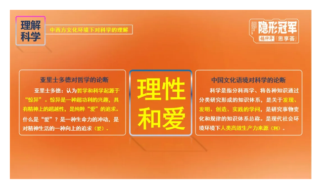 人類(lèi)是社會(huì )性動(dòng)物,人們通過(guò)言語(yǔ)、非語(yǔ)言符號等方式形成思維的交流。所以樓老師還通過(guò)分析中西方語(yǔ)言和文字的不同,讓同學(xué)們理解不同文化下的思維差異,比如在語(yǔ)言上,中國人習慣“半句話(huà)”“微言大義”,模糊了精確性,西方則更注重理性和邏輯嚴謹;文字方面,漢字造就“重直覺(jué)、輕邏輯”的具象思維,西方字母催生抽象概念。