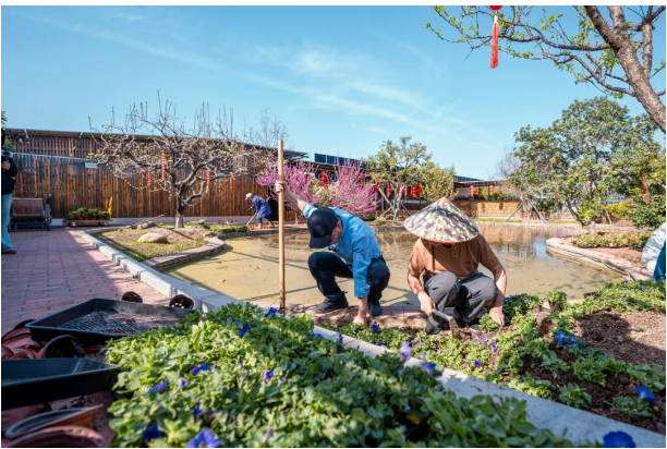當天下午,樓仲平就帶領(lǐng)著(zhù)一群園丁們熱火朝天地忙碌起來(lái)。經(jīng)過(guò)一番精心改造,一座宛如莫奈花園般的美麗景觀(guān)“橫空出世”!眾人拾柴火焰高,這效率杠杠的!大家不妨猜一猜,這里即將迎來(lái)怎樣的改造呢?