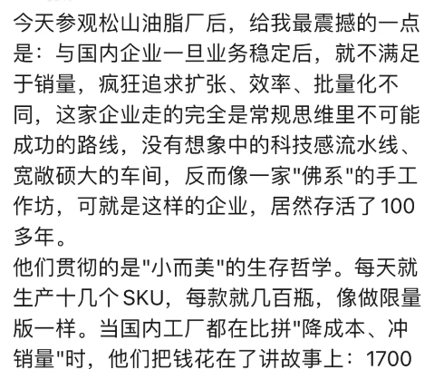 與國內企業(yè)一旦業(yè)務(wù)穩定后,就不滿(mǎn)足于銷(xiāo)量,瘋狂追求擴張、效率、批量化不同,這家企業(yè)走的完全是常規思維里不可能成功的路線(xiàn),沒(méi)有想象中的科技感流水線(xiàn)、寬敞碩大的車(chē)間,反而像一家"佛系"的手工作坊,可就是這樣的企業(yè),居然存活了100多年。