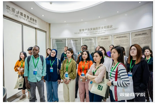 在中國吸管博物館,新漢學(xué)博士學(xué)術(shù)研習團在講解員的引領(lǐng)下,深入了解了小小吸管背后的產(chǎn)業(yè)發(fā)展變遷,以及雙童是如何推動(dòng)吸管產(chǎn)業(yè)綠色發(fā)展的。