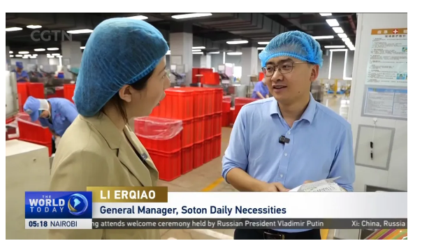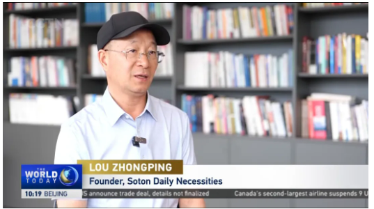 央視CGTN記者也走進(jìn)雙童,實(shí)地采訪(fǎng)董事長(cháng)樓仲平和總經(jīng)理李二橋。巧合的是,采訪(fǎng)當天,雙童的美國訂單正在重啟生產(chǎn)發(fā)貨計劃。